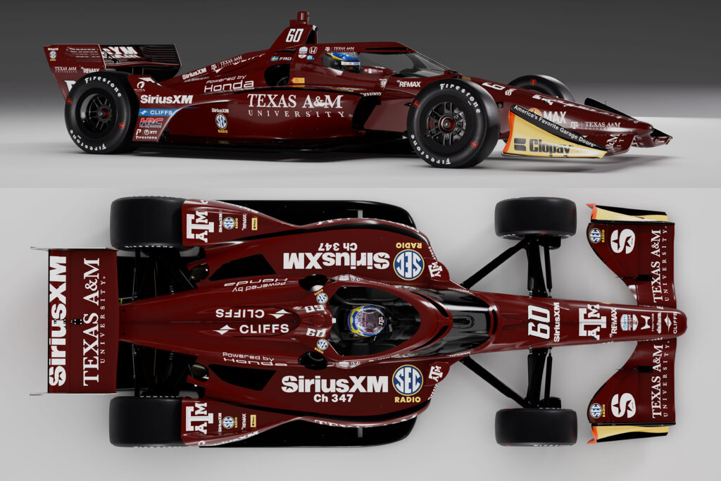 With INDYCAR returning to Texas for the first time since 2023, Rosenqvist and Meyer Shank Racing will mark the occasion by deploying a bespoke design on the Swede’s MSR Honda this weekend, featuring branding from SiriusXM SEC Radio and Texas A&M University.